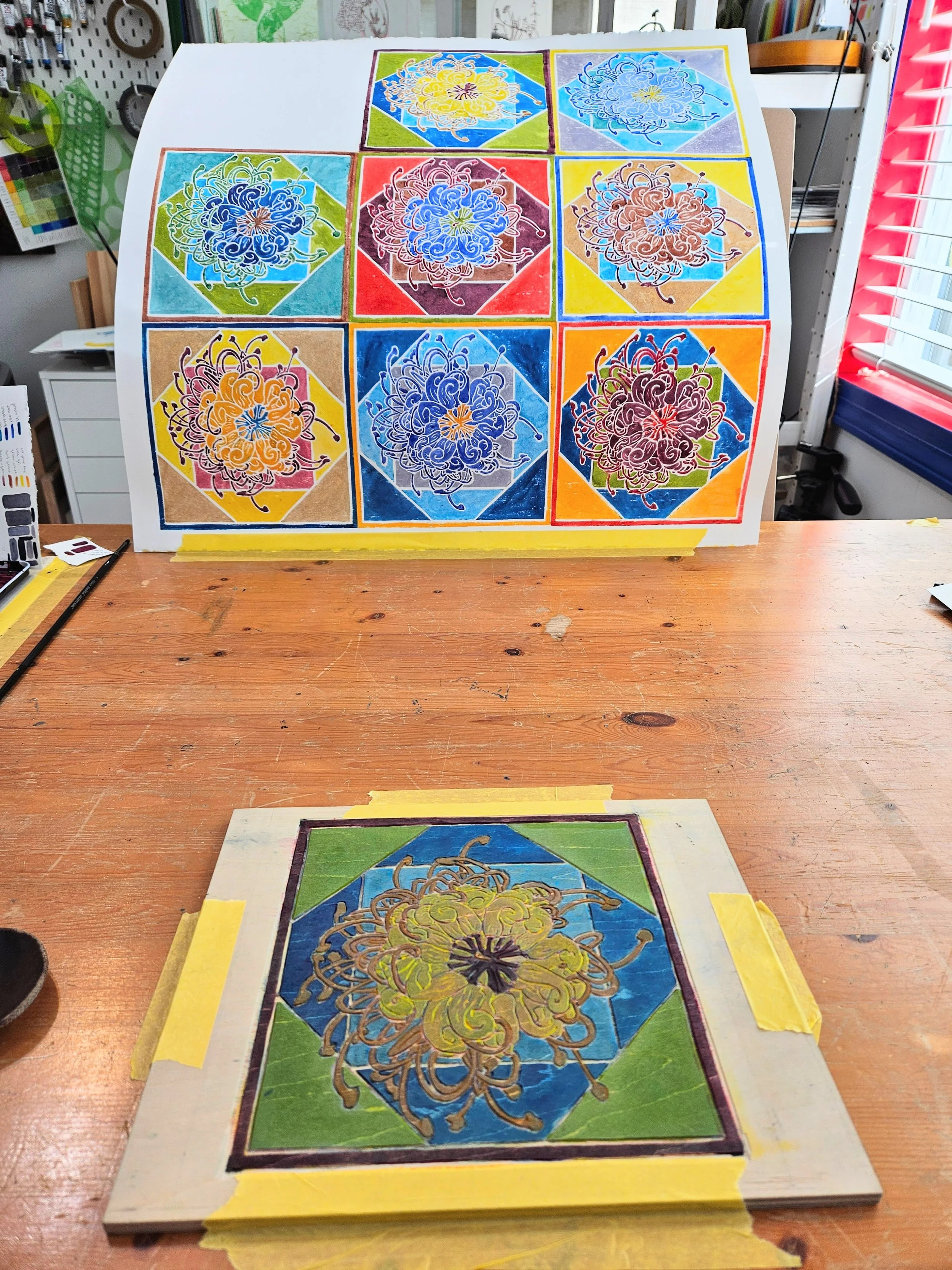 These white line woodblock paintings are a masterclass in patience, presence, and pacing. I cannot rush the actions, nor can I dawdle. To work on these pieces really is a moving meditation, and I think that sense of peace and centeredness comes across in the work.